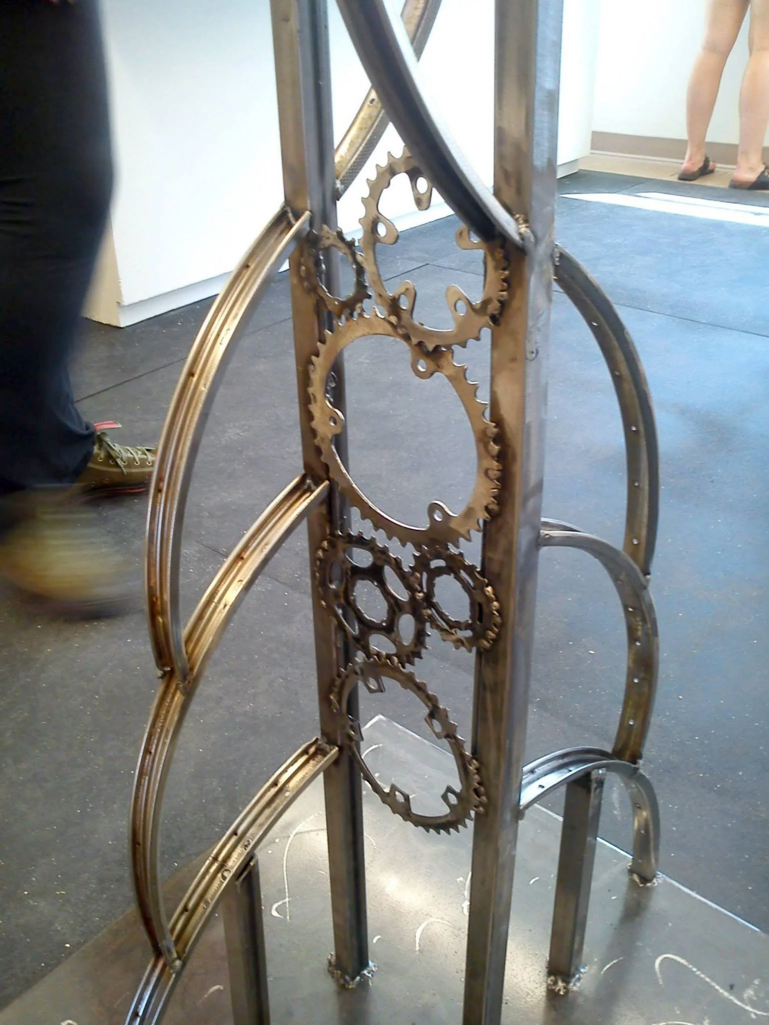 The center’s art and furniture are made with the very bike parts and materials that will be used there.